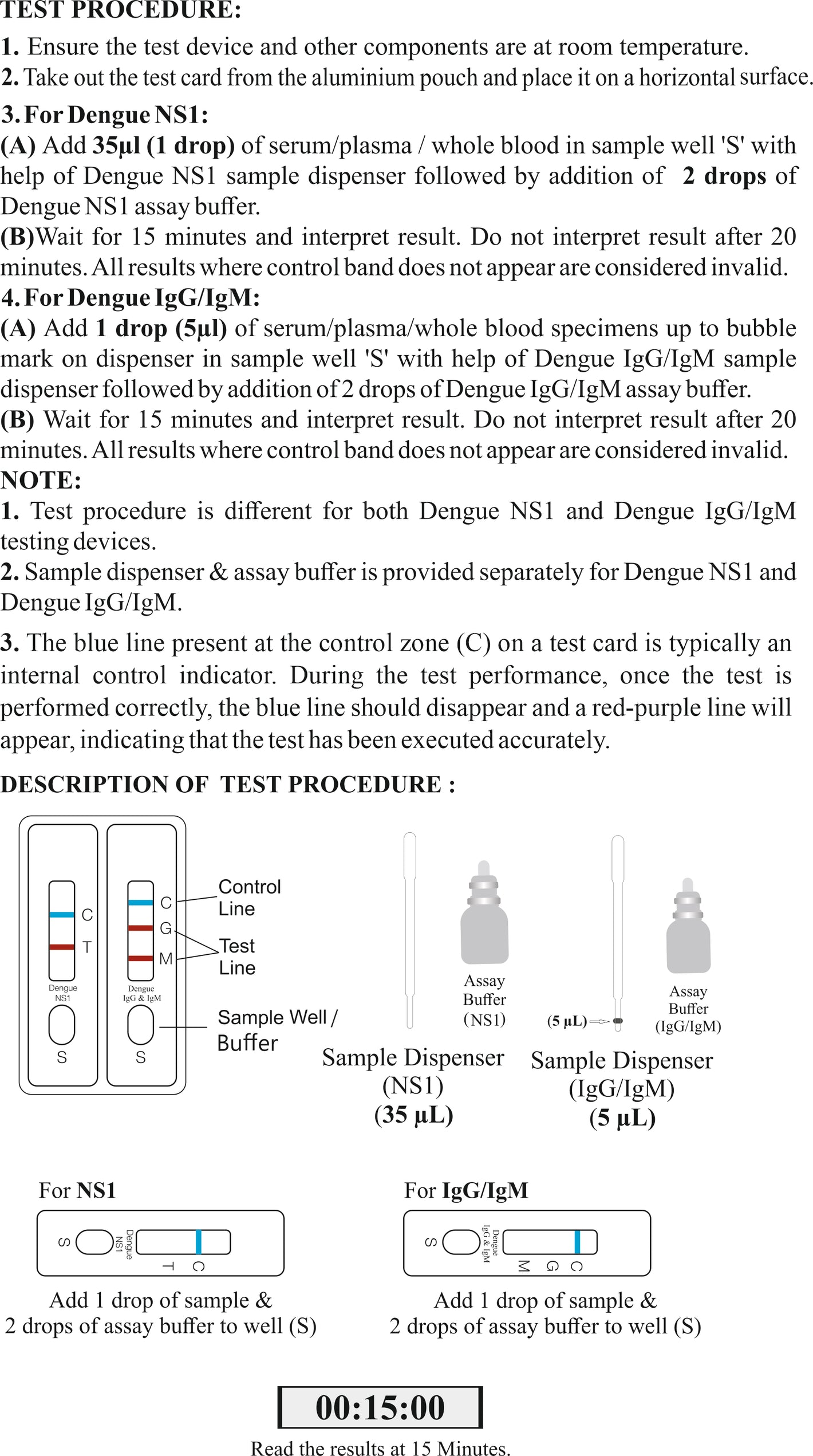 Combines detection of NS1 antigen and IgG/IgM antibodies, allowing for diagnosis in both early and later stages of Dengue virus infection.