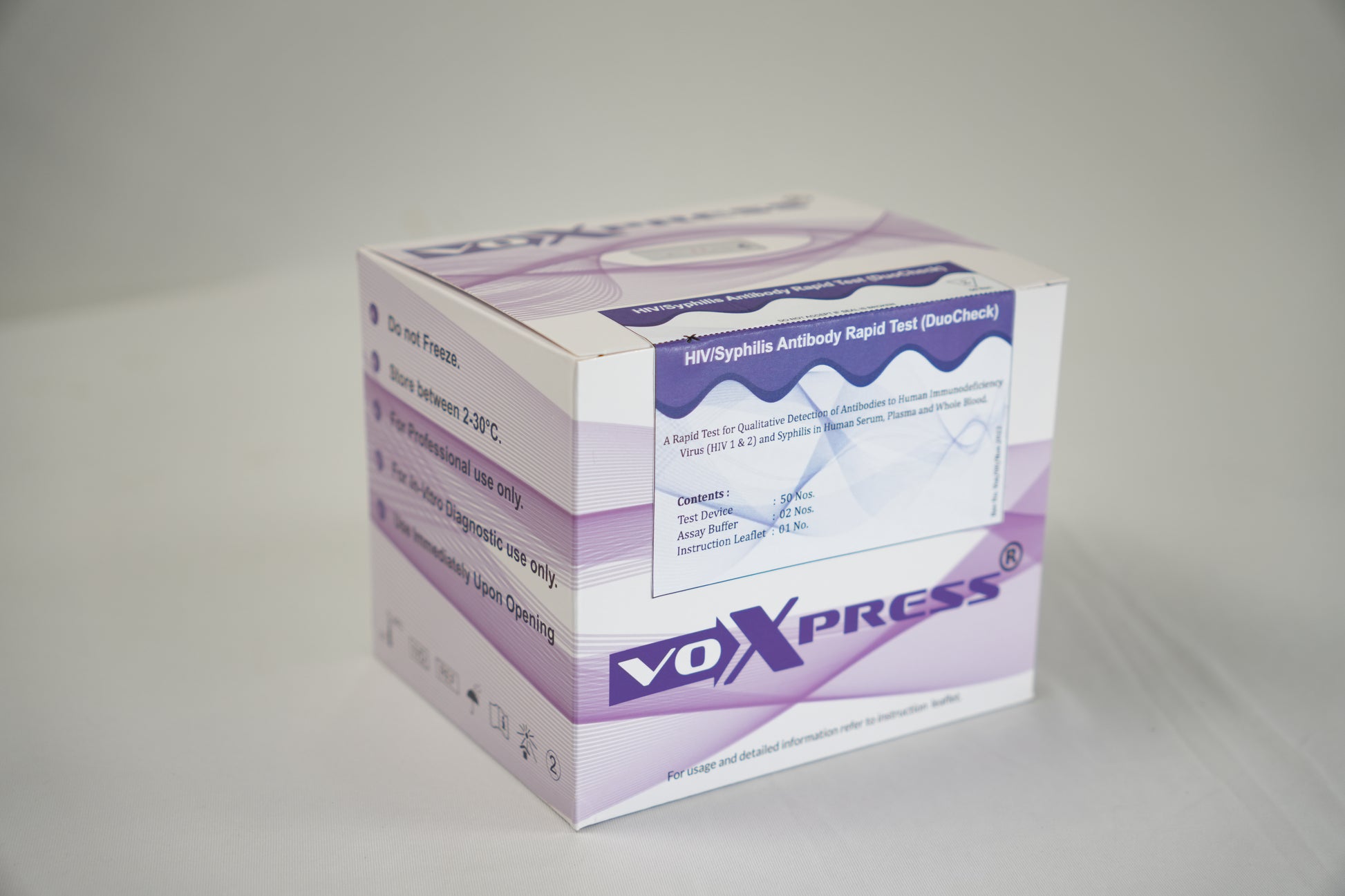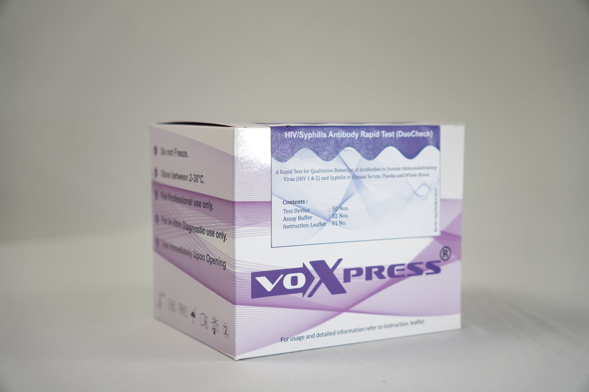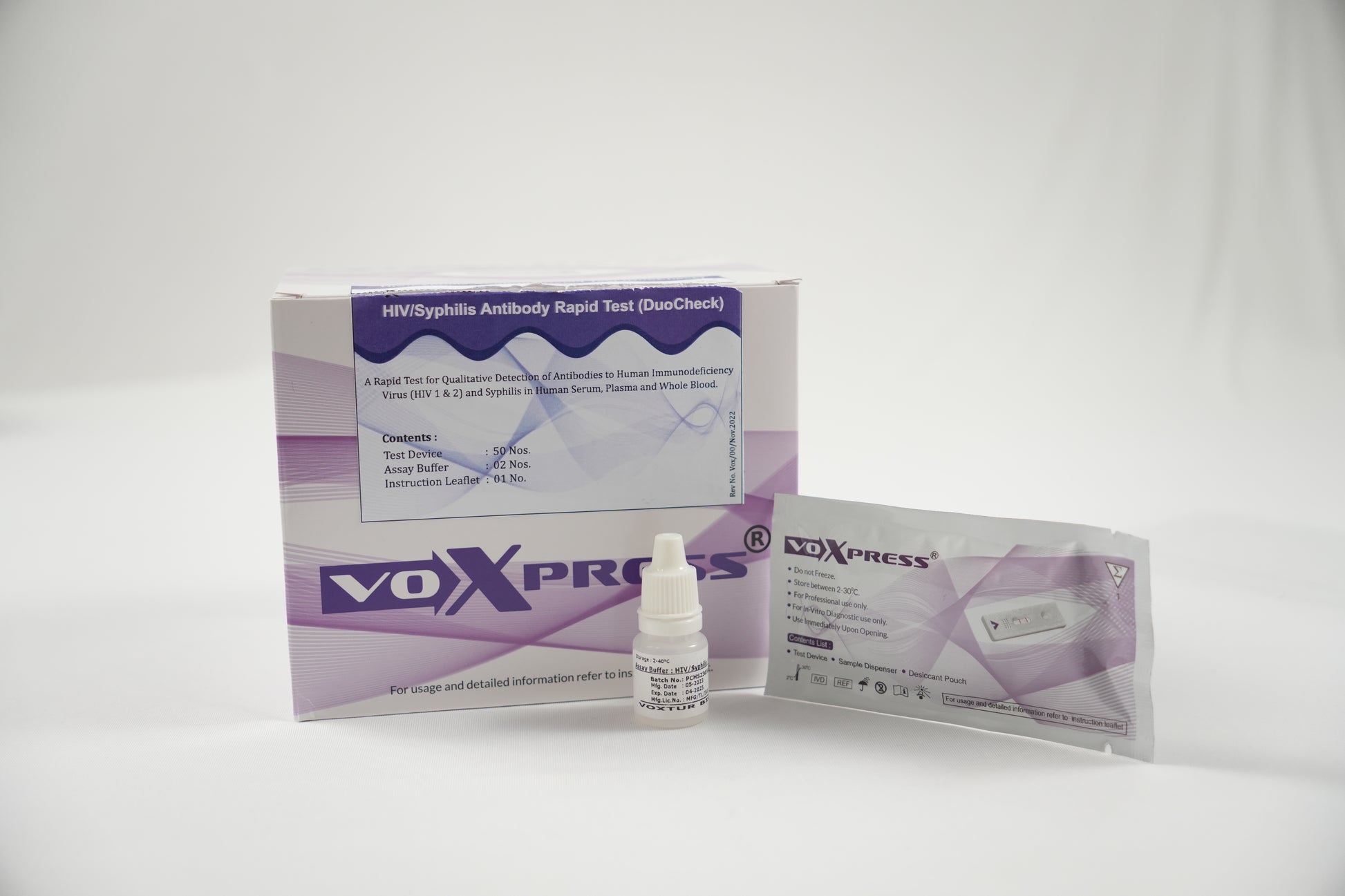 A combined rapid test that detects both HIV-1 and HIV-2 antibodies and Treponema pallidum antibodies (syphilis), allowing for simultaneous screening of both HIV and syphilis infections. It is ideal for use in high-risk populations or routine screening.